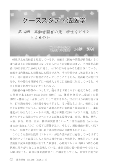 今回は、死因究明の前提知識として知っておくべき高齢者の特質を解説。